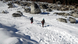 യാത്രയിൽ ഒരു സൈഡ് എപ്പോഴും beas റിവർ കാണാം. തെളിഞ്ഞ വെള്ളമുള്ള, ഉരുളൻ കല്ലുകൾ ഉള്ള നദി. പോകുന്ന വഴി സ്നോ ഡ്രസ്സ് മേടിക്കാൻ ആയി വണ്ടി നിർത്തി. ഞങ്ങൾ ski ഡ്രസ്സ് അവിടെ നിന്ന് റെന്റ് ഇന് എടുത്തു. goverment നിശ്ചയിച്ചുറപ്പിച്ച ഒരു റേറ്റ് ഉണ്ട് ഇതിന്റെ ഒക്കെ. പക്ഷെ അവര് എഴുതി വച്ചേക്കുന്ന റേറ്റ് അതിൽ നിന്നും കൂടുതൽ ആണ്. നമ്മളുടെ കയ്യിൽ എത്ര കട്ടി ഉള്ള ജാക്കെറ്റ് ഉണ്ടേലും അതിൽ തണുപ്പ് നില്ക്കില്ല. മഞ്ഞിലേക്ക് ഇറങ്ങുമ്പോൾ ഈ ടൈപ്പ് ഡ്രസ്സ് കൂടിയേ തീരു. കഴുത്ത് തൊട്ടു കാൽ വരെ മൂടി കിടക്കുന്ന waterproof ആയ ഡ്രസ്സ് ആണിത്. സത്യം പറയാമല്ലോ ആ ഡ്രസ്സ് കണ്ടാൽ തൊട്ടു നോക്കാൻ പോലും മനസ്സ് അനുവദിക്കില്ല. അവർ ഡ്രൈ ക്ലീൻ ചെയ്യുന്നതാണ് എന്നൊക്കെ പറയുന്നുണ്ടായിരുന്നു. 350 രൂപ ആണ് അതിന്റെ റെന്റ്. നമ്മൾ ഇട്ടെക്കുന്ന ജാക്കെറ്റ് ഒക്കെ ഊരി മാറ്റി അത് ഇടണം. പിന്നെ സ്ടിക്ക് വേണം എന്നുണ്ടെങ്കിൽ അതും മേടിക്കണം. ഞങ്ങൾ അത് മേടിച്ചില്ലായിരുന്നു. പക്ഷെ വാലിയിൽ എത്തിയപ്പോൾ സ്ടിക്ക് ഉണ്ടായിരുന്നേൽ നല്ലതായിരുന്നു എന്ന് പല സ്ഥലത്തും തോന്നിയിരുന്നു. പിന്നെ മേടിക്കേണ്ടത് ഒരു സോക്ക്സ്. ഞങ്ങൾ ഇട്ടിരുന്നത് വൂളെൻ സോക്ക്സ് തന്നെ ആയിരുന്നു പക്ഷെ അവർ പറയുന്നത് ആ സോക്ക്സ് ഇട്ടതു കൊണ്ട് കാര്യം ഇല്ലെന്നാണ്. ഇത് കമ്പിളി പോലെ തോന്നും കാണാൻ. പിന്നെ ഗ്ലൌസ്. വൂളെൻ ഗ്ലൌസ് ഇന്റെ മേൽ ഈ വാട്ടർ പ്രൂഫ് ഗ്ലൌസ് ഇടണം. വൂളെൻ ആണേൽ നനയും. ഇനിയും ഉണ്ട്. റബ്ബർ ഷൂസ്. കാരണം സെയിം തന്നെ. നമ്മുടെ ഷൂസ് നനഞ്ഞു കുളമാകും. അത് മാത്രമല്ല നടക്കുമ്പോൾ കാൽമുട്ടോളം പുതയുന്ന ഐസ് കാണും ചില സ്ഥലങ്ങളിൽ അതിന് ഈ ടൈപ്പ് ഷൂസ് തന്നെ ആകും നല്ലത്. ഗ്ലൌസ് , സോക്ക്സ് ഇത് രണ്ടും നമ്മൾ സ്വന്തം ആയിട്ടാണ് മേടിക്കേണ്ടത്. എല്ലാം കൂടി മേടിച്ചു വരുമ്പോൾ ഒരാൾക്ക് 650-750 രൂപ അടുത്താകും. ബാർഗൈൻ ചെയ്തു നോക്കിയാൽ എന്തേലും കുറച്ചേക്കും. നിങ്ങൾ എപ്പോഴും യാത്ര ചെയ്യുന്നവർ ആണേൽ നല്ല ഒരു ski ഡ്രസ്സ് മേടിച്ചു വയ്ക്കുന്നതാണ് നല്ലത്. ഇതെല്ലാം കൂടി ഇട്ടു കഴിഞ്ഞപ്പോൾ നടക്കാൻ നല്ല പ്രയാസം തോന്നി. ഒരു സൺഗ്ലാസും ചെവി മൂടുന്ന രീതിയിൽ ഉള്ള ക്യാപും കൂടി വച്ച് കഴിഞ്ഞാൽ മഞ്ഞിലെക്കിറങ്ങാൻ നമ്മൾ റെഡി ആയി. ഇനി കുറച്ചു ദൂരം കൂടി ഉണ്ട് വാലിയിൽ എത്താൻ. അവിടെ ചെന്ന് കഴിഞ്ഞപ്പോഴേക്കും സഫ്ഫ്രോൺ വിൽക്കുന്നവരും, കുതിര സവാരി ക്ക് കൊണ്ട് പോകുന്നവരും, ഹിമാചലി ഡ്രസ്സ് ഇട്ടു ഫോട്ടോ എടുപ്പിക്കുന്നവരും , photographers ഉം എല്ലാവരും കൂടി വന്നു വട്ടം വളഞ്ഞു നിന്നു. കൂട്ടത്തിൽ ഹിമാചലി ഡ്രസ്സ് അണിയിച്ച് ഫോട്ടോ എടുക്കുന്നവരെ ബുക്ക് ചെയ്തു.